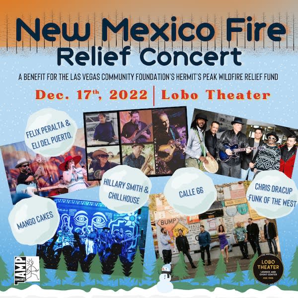 The Hermits Peak and Calf Canyon Fire is the largest standalone fire in New Mexico history. Hundreds of homes were destroyed and thousands of people are still struggling with basic necessities. Hillary Smith reached out to us to help with a fundraiser for people struggling with the impact of the fire and in no time many of Albuquerque's best bands had signed on to lend a hand. This is a stellar lineup of music running from 3 to 9 pm. Come join us for a great party and a chance to support our friends and neighbors to the north. Funds will be distributed to the community through the Las Vegas Community Foundation's Hermit's Peak Wildfire Relief Fund. (You can donate directly to that too.)