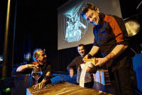On stage, during the screening, the Alcoléa et Cie trio of musicians plays some fifty different instruments, including rare, unique, and hand-built ones. Acclaimed French composer and musician Jean-François Alcoléa has written the original score, which unfolds in perfect symbiosis with the creative genius of Méliès. Poetic, playful, and filled with surprise and delight, Right in the Eye is a great show for children, adults, and everyone in between who loves the sweet madness of early cinema and exciting contemporary music. Following successful runs and 500 performances in Europe and in North America, the French artist and composer Jean-François Alcoléa continues its epic journey all over the world.