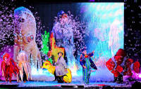 Taking cues from Cirque du Soleil, the visually spectacular show incorporates the latest in stage technology. Lasers, low ground smoke and flying foam simulate waves and the underwater atmosphere.